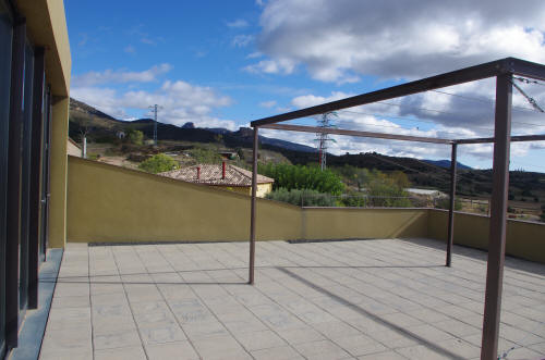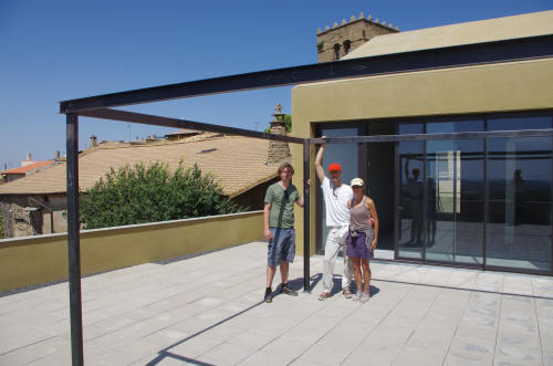 Construccion construcción de acero para una sombrilla en la terraza sur