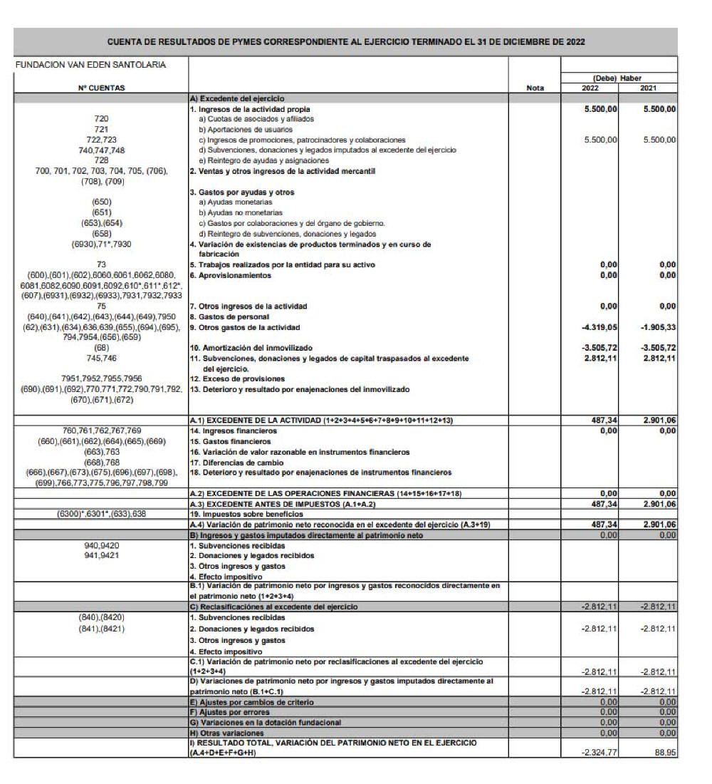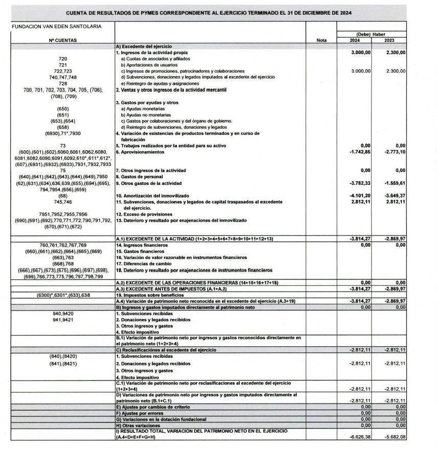De Stichting van Eden – Santolaria werkt onder de fiscale regels van de organisaties zonder oogmerk van winst (volgens de wet 49/2002). Alle normale activiteiten bleven onder de fiscale regels van de organisaties zonder winstoogmerk en