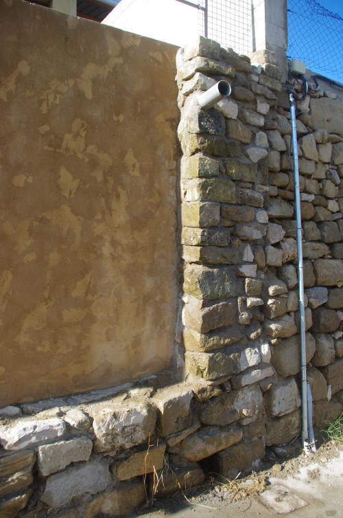 Columna de piedra para juntar el muro de la Fundacion
