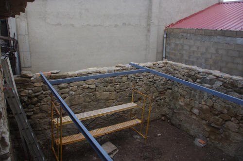 Construcción de los muros de piedra del patio (Jan van Eden) y la estructura de