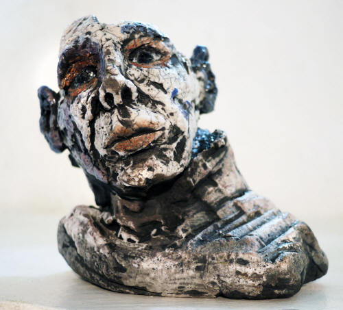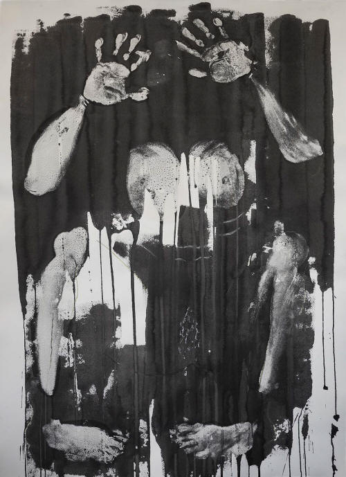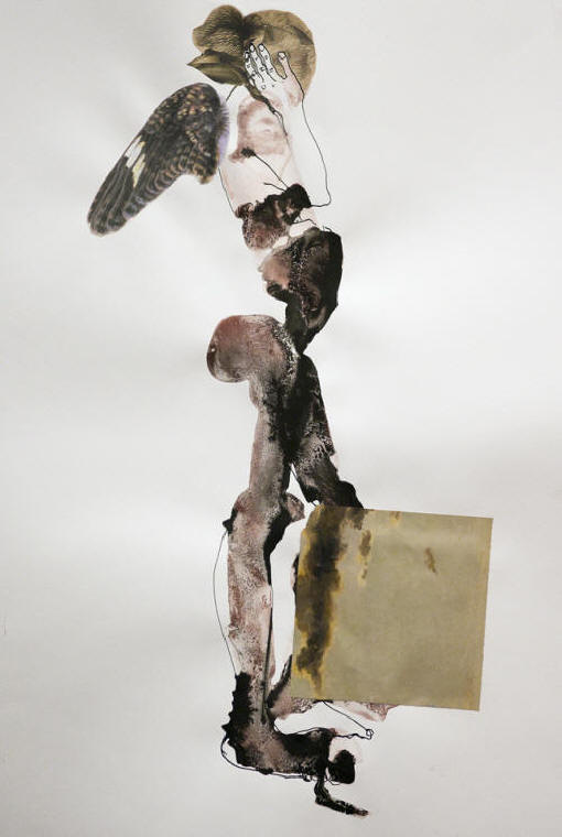 mixed media arcilla Africana, tinta y collage sobre papel,