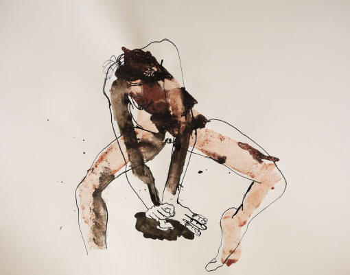 mixed media arcilla Africana y tinta sobre papel, 50x65 cm, Ref. hs2007