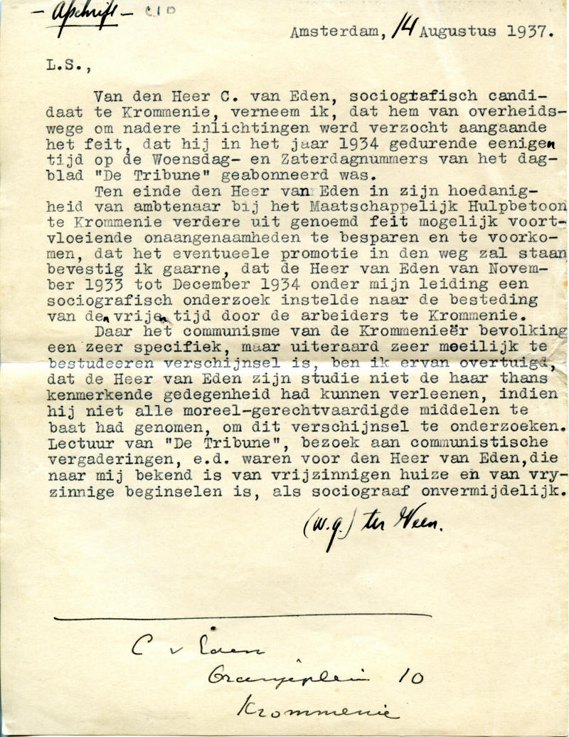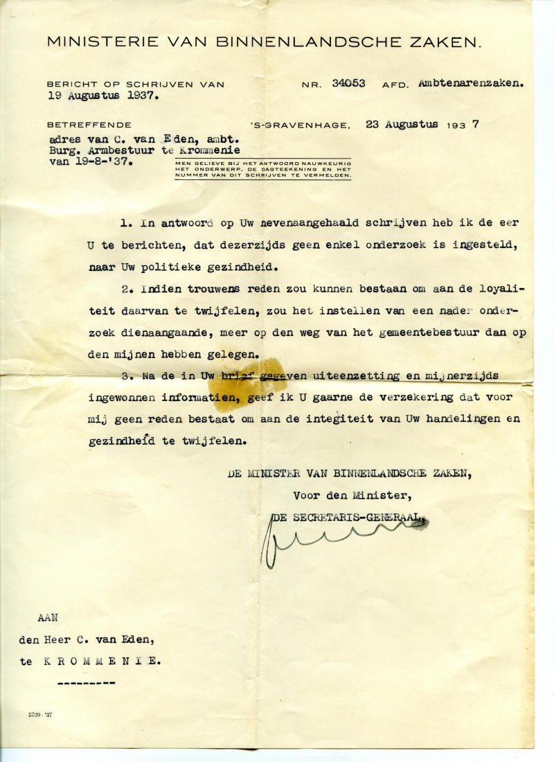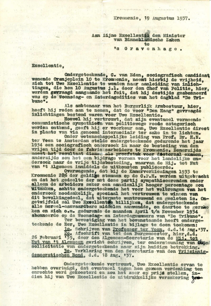 Brief van mijn vader Cees aan de minister van Binnenlandse Zaken