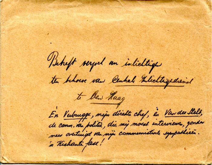 van C van Eden op de envelop, waarin documenten betreffende de beschuldiging