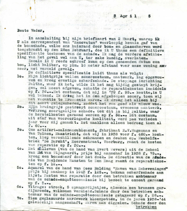 Een brief van mijn vader waarin hij vergoeding van schade