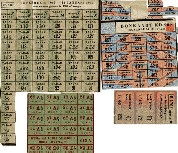 Distributiebonnen uit de oorlogsjaren, en ze bleven in gebruik tot in de jaren 50.