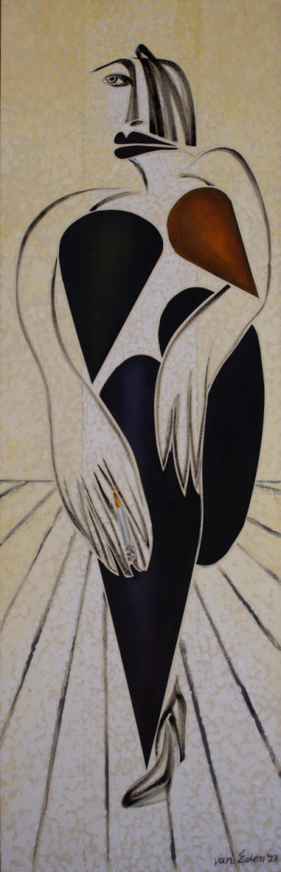 232501 Schlanke Bauhaus frau mit Zigarette,2023,